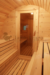 Создаст приятную атмосферу с приглушённым светом, а также визуально расширит пространство парной.
