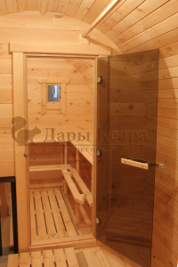 Размер окна варьируется от 120 см до 180 см в длину, ширина согласовывается индивидуально. Добавит света парному отделению, а также визуально расширит пространство.