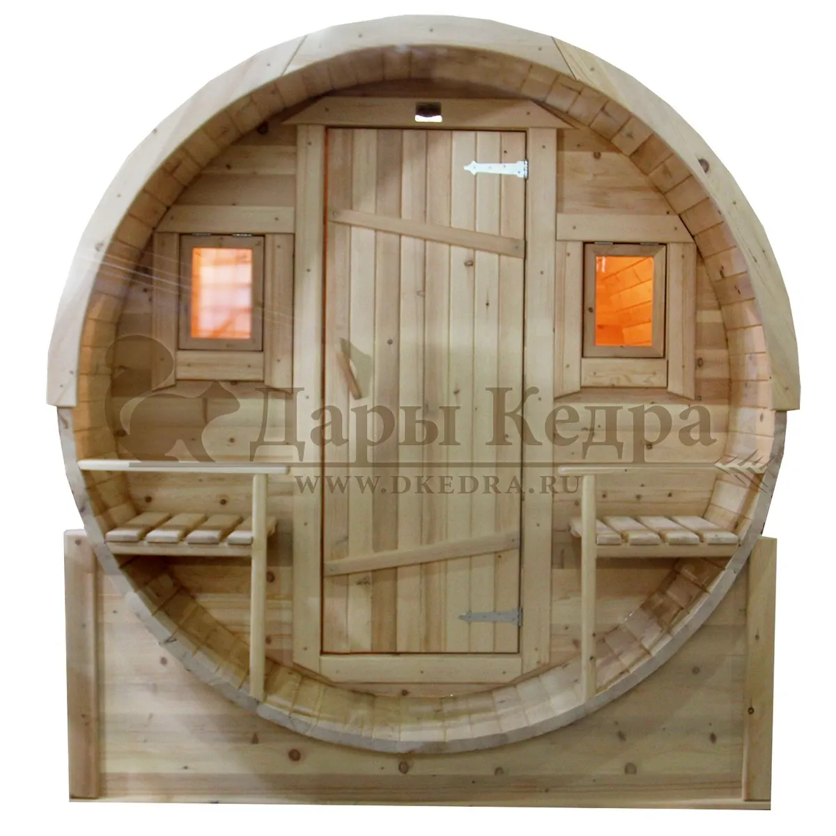 Этой весной приобрели в Дарах Кедра прямоугольную баню-бочку. Весь июнь пользовались, пока претензий у меня нет. Посмотрим, как будет дальше, и как себя покажет баня зимой, но думаю, что все будет хорошо (т.к. у друзей стоит подобная и уже перезимовала не одну зиму). Единственный момент с доставкой был косяк, но это уже претензия не к Дарам Кедра, а к транспортной компании. Поэтому не бойтесь заказывать такие диковинные бани, у них очень много плюсов, по крайней мере она прогревается в два раза быстрее, чем обычная баня - это факт!