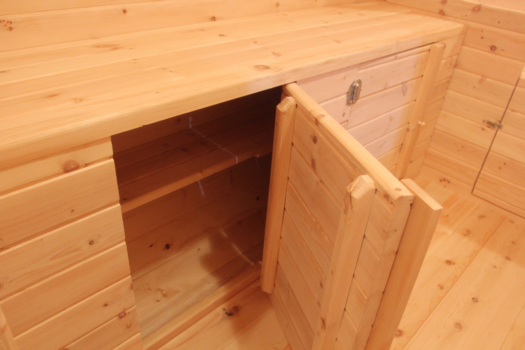 Обращаем Ваше внимание, что в стандартную комплектацию бани входит полок открытого типа в парной. Дополнительно можно заказать полок закрытого типа или лавку!