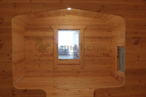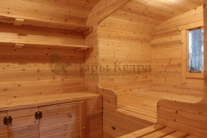Размер окна варьируется от 120 см до 180 см в длину, ширина согласовывается индивидуально. Добавит света парному отделению, а также визуально расширит пространство.