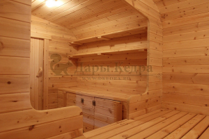Для удобства размещения бытовых мелочей обязательно добавьте небольшие шкафчики с дверцами (2 шт) - 15 000 руб и верхние открытые полки (2 шт) - 5 000 руб. Всё необходимое в бане или доме должно быть всегда под рукой!