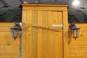 Козырек из кедра - это защита входа в баню и всего фасада от лишней влаги, что, конечно, лучшим образом скажется на красоте и долговечности дерева.