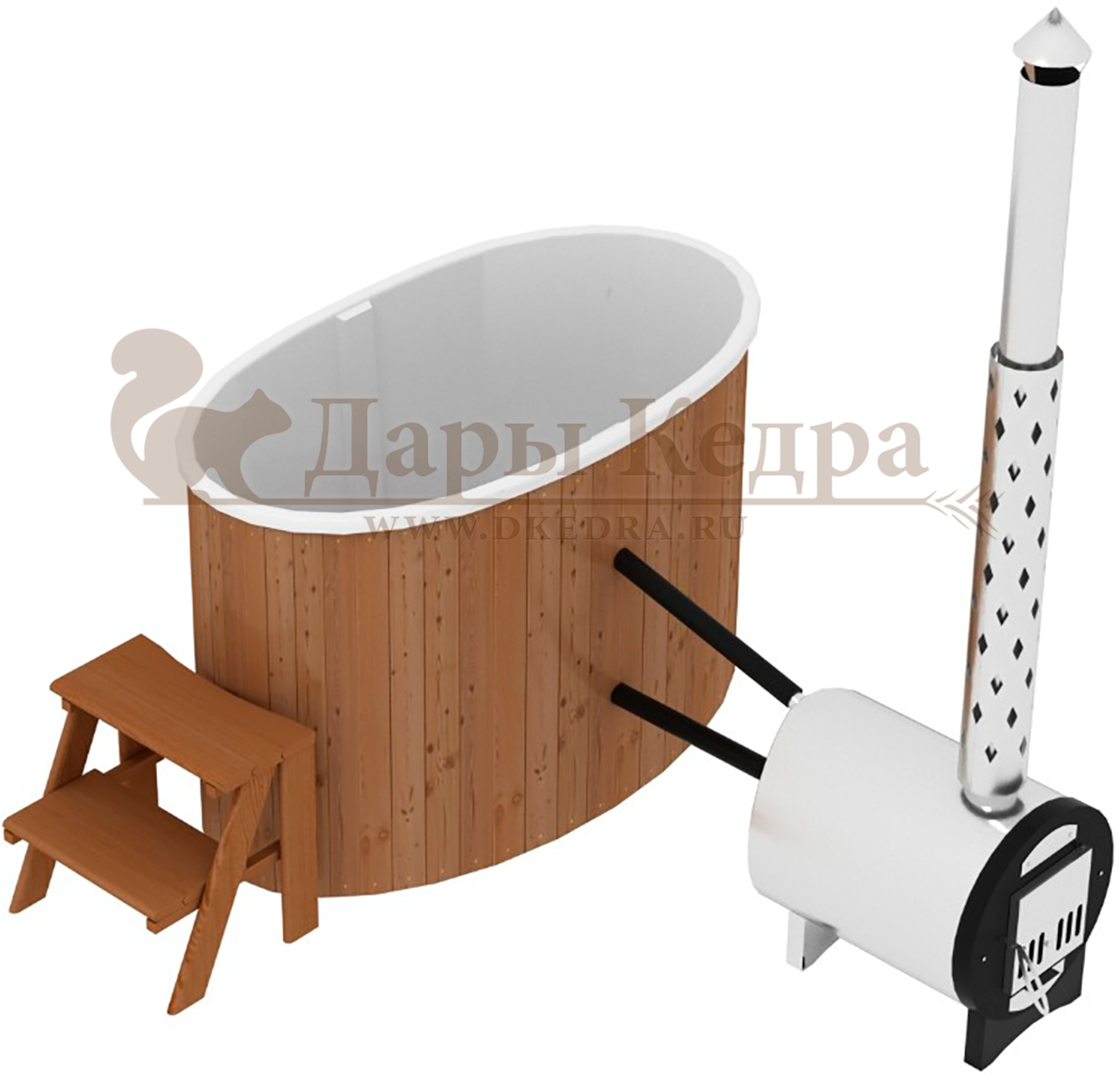 Финская овальная композитная купель с подогревом (с печкой) «НОТА 98 с печью 25 квт» Это уличная подогреваемая купель с овальной внутренней чашей, которая изготовлена из современного прочного и термоустойчивого материала (композита). Форма чаши обеспечивает комфортную посадку во время принятия процедур. Для удобства пользования купель оборудована приставной лестницей. Подогрев воды осуществляется внешней печью с дымоходом. Композитная вставка придает купели красивый внешний вид, продлевает срок службы и облегчает уход за изделием. Парение на свежем воздухе – это отличный способ укрепить здоровье и поддержать организм в тонусе.