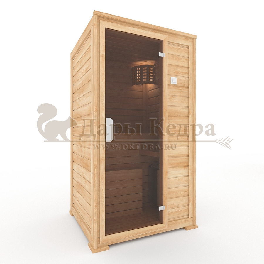 Финская сауна с электрокаменкой представляет собой компактную парную кабину, изготовленную из целебной древесины сибирского кедра. Финская
