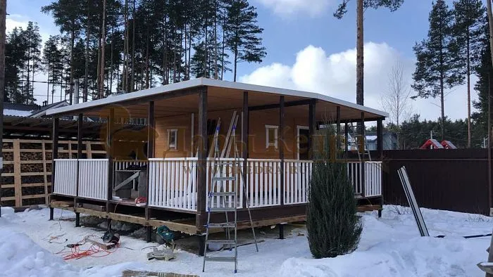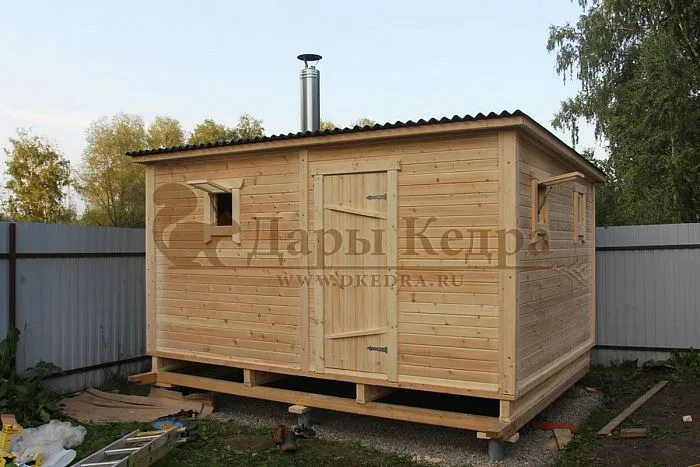 - Металлокаркас на сваях. Такое основание мобильной парной рекомендуется делать там, где грунт нестабильный, выпадает много осадков. При желании снаружи его можно обшить деревом или яхтенной доской.