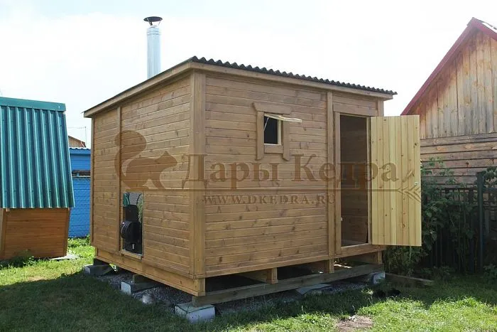 Перед покупкой и установкой каркасно-щитовой банной конструкции на участке необходимо позаботиться о фундаменте или площадке, куда будет в последующем установлена баня. Любая модель мобильной парной, по заявлению производителя, не нуждается в полноценном фундаменте, т.к. такая она весит гораздо меньше классической парной из бруса и может быть установлена на любую ровную поверхность. Главное условие, чтобы дно парилки было проветриваемым, а также соблюдался уровень! Под ней не должно быть травы и других объектов, мешающих свободной вентиляции воздуха. А также рекомендуется организовать централизованный отвод воды.