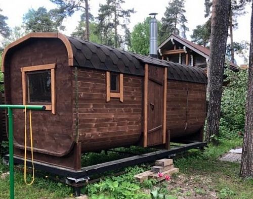 Нашел в интернете такую баню-бочку, решил рискнуть и заказать аж шестиметровую баню. Семья у нас большая, народу много, часто приезжают родственники в гости с ночевкой, поэтому большая баня для нас - это просто необходимость, а не прихоть. Баню изготовили в течение трех недель, потом доставка на место. Собирал сам с братом, примерно пару выходных ушло у нас на сборку. Возможно, профессионал и собрал бы за день, но мы так быстро не умеем работать))) Поэтому не рассчитывайте, что при самостоятельной сборке у вас уйдет день))) Баня получилась шикарная, внутри и снаружи, просто сказка! Топится невероятно быстро для такого размера, я сначала топлю "по-черному" для себя, потом уже по мере остывания идут все остальные, кто не любит жару...В общем, все в восторге!!!